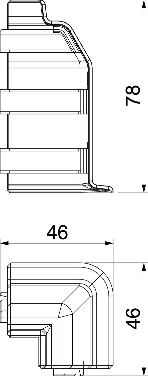 Bezhalogénový nie CO2 stopa (GWP) od kolísky po bránu 0,0535 kg CO2e / 1 Kus Dekorácia bez Dĺžka 78 mm Farba čisto biela; RAL 9010 Materiál Polyvinylchlorid Rozsah uhla min. 90 mm S kobercovou lištou nie Stupeň krytia IP40 Stupeň krytia kód IK IK06 Teplotný rozsah použitia max. 60 °C Teplotný rozsah použitia min. -5 °C Tesniaca chlopňa horný diel Stena/podlaha Vyhotovenie Vylisovaný kryt Výška 46 mm - Všetky typy