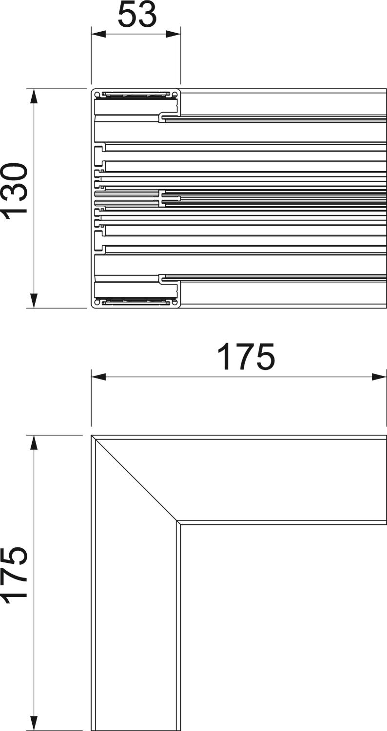 Antibakteriálna úprava nie Bezhalogénový áno CO2 stopa (GWP) od kolísky po bránu 11,3972 kg CO2e / 1 Kus Dĺžka 175 mm Farba čisto biela; RAL 9010 Forma symetrický Kanálová spojka nie Materiál Hliník Montážne dierovanie na dne nie Ochranná fólia áno Počet horných dielov 2 pre rozmer kanálu 53 x 130 mm pre šírku kanála 130 mm pre výšku kanála 53 mm Rozmer 53x130x175 Rozsah uhla min. 90 mm Šírka 130 mm Šírka horného dielca 45 mm Šírka horného dielu 2 45 mm Spona na uchytenie káblov nie Spôsob montáže horných dielov vnútorný Stupeň krytia IP40 Stupeň krytia kód IK IK10 Teplotný rozsah použitia max. 60 °C Teplotný rozsah použitia min. -15 °C Vyhotovenie Podkladový diel Výška 53 mm - Všetky typy