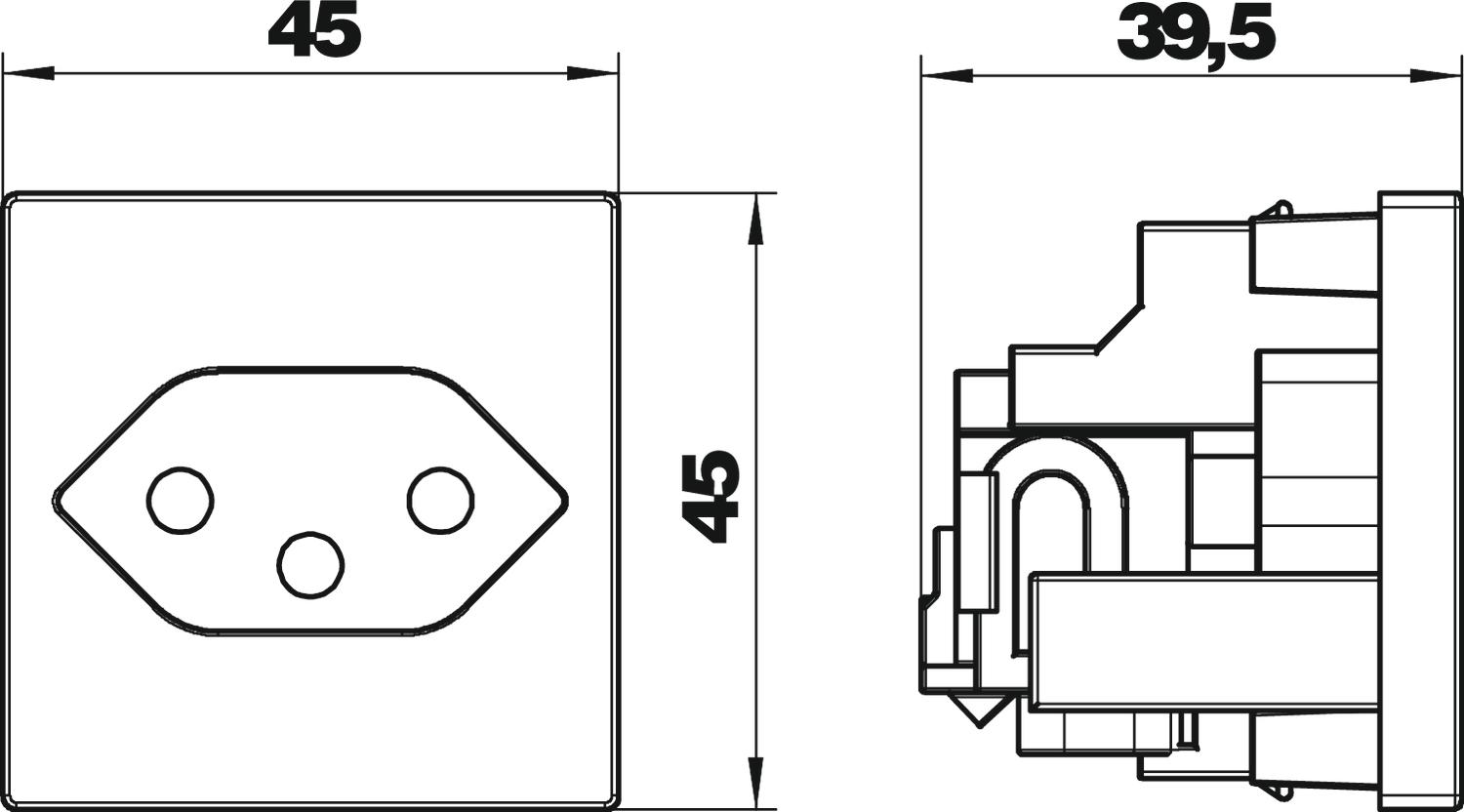 Popis produktuZásuvka, jednoduchá 0°, podle švýcarské normy (SEV), s násuvnými svorkami, 2pól., 10 A, 250 V~, typ 13, se spojovacími svorkami podle IEC 60884-1.