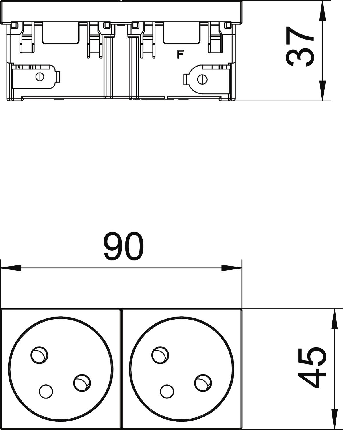Popis produktuZásuvka se zemnicím kolíkem a bočním připojením Dvojnásobná, 33°, se zvýšenou ochranou proti nebezpečnému dotyku a násuvnými svorkami, 2-pól., 16 A, 250 V~, se spojovacími svorkami dle IEC 60884-1.