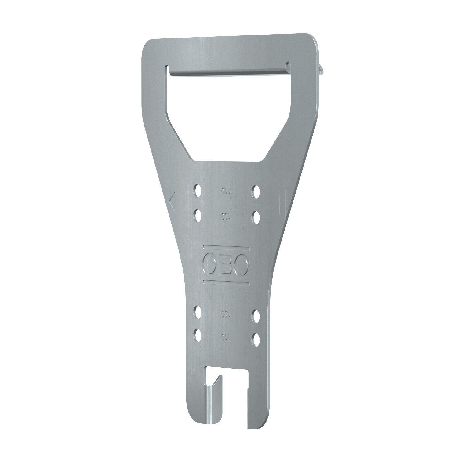 Zdvihák veka sa môže použiť alternatívne aj ako šablóna na dierovanie spojky pri káblových žľaboch rezaných na mieste montáže. Na tento účel otočte zdvihák veka o 180° a umiestnite ho na káblový žľab. Následne v závislosti od bočnej výšky použite príslušnú dierovú šablónu.